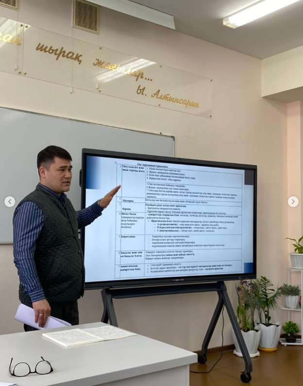 2026 жылғы 18 наурызда Ы.Алтынсарин атындағы мамандандырылған мектеп-гимназия-интернатында «Идеядан РӘОК грифіне дейін: авторлық бағдарламаны әзірлеу алгоритмі» тақырыбында шебер - сынып өтті.