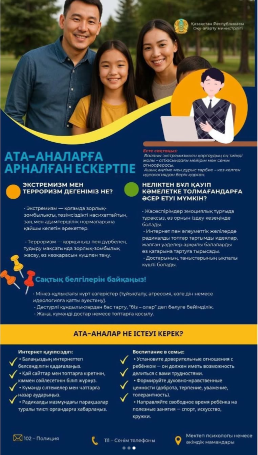 Балаларыңызды терроризм және экстремизмнен сақтаңыздар!