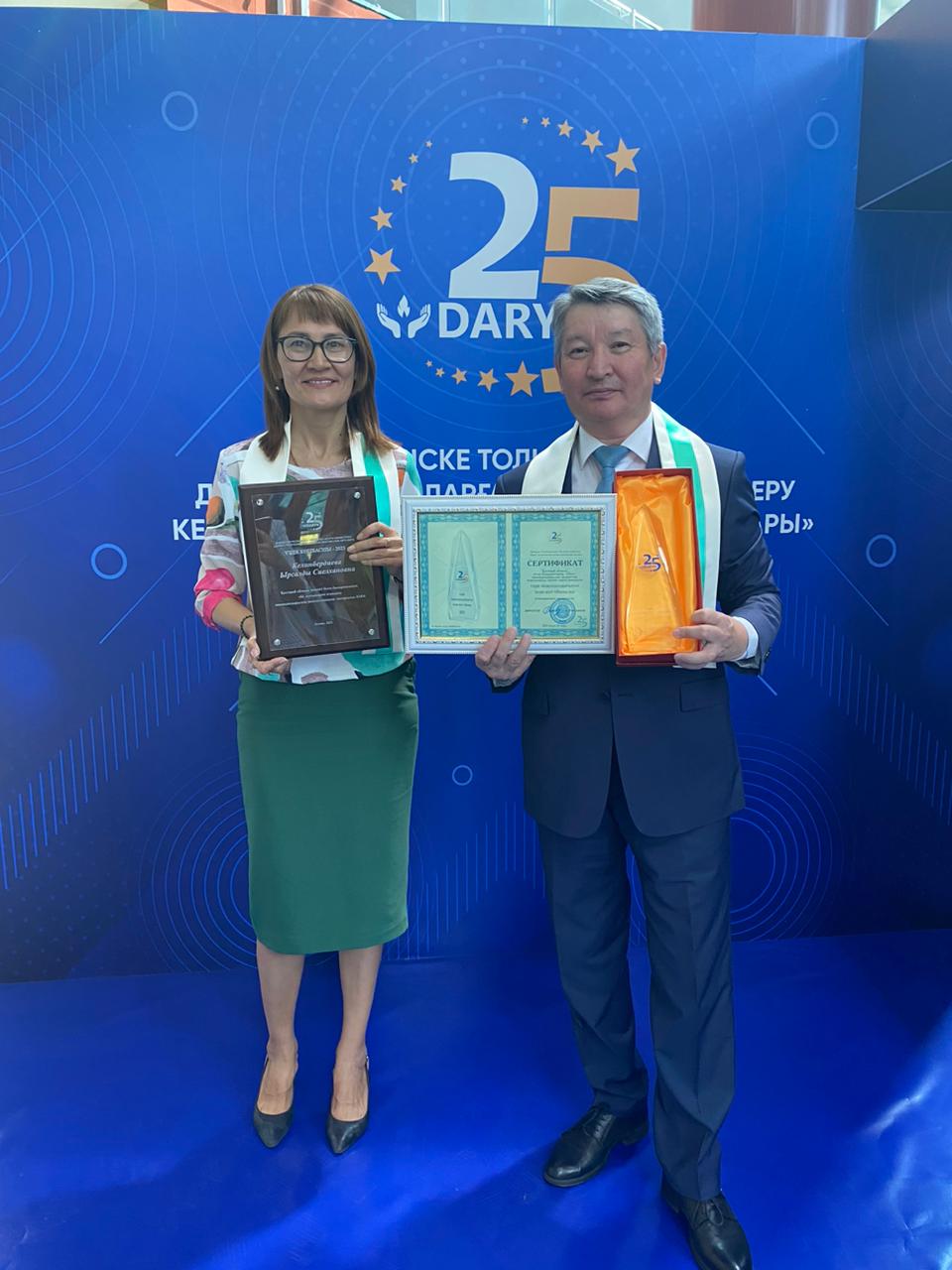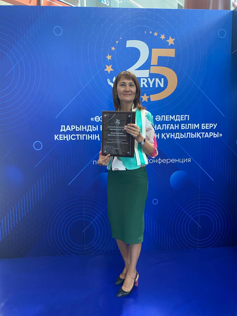 Конференцияның «Жыл нәтижесі – 2023» марапаттау рәсімінде мектебіміздің директоры Келинбердиева Ырсалды Сиелхановна «ҮЗДІК КӨШБАСШЫ-2023» номинациясына ие болды. Сонымен қатар «ДАРЫН» РҒПО-ның 25 жылдық мерейтойына арналған төсбелгімен марапатталды.