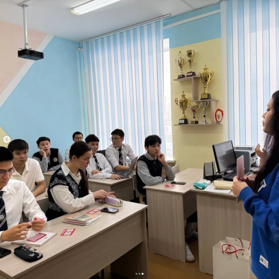Университет мамандары 11-сынып оқушыларымен кездесу өткізіп, кәсіби бағдар беру мақсатында мазмұнды ақпараттармен бөлісті.
